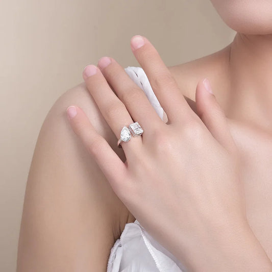 המע"מ עלינו 18%שקד | טבעת מוסונייט פתוחה בעיצוב כפול