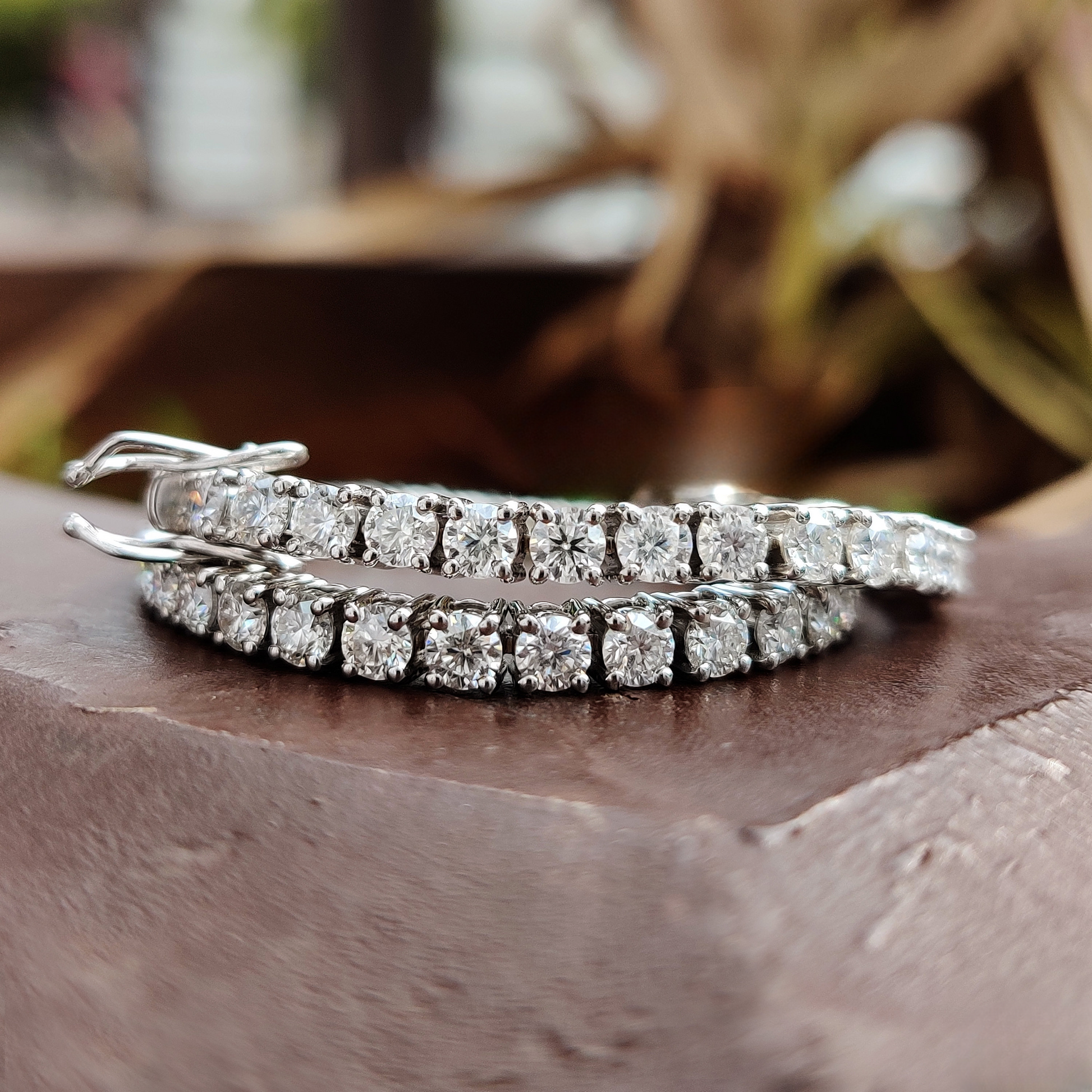 שורה של אבני מואסנייט בעבודת מעבדה נוצות בקוטר 3 מ"מ, משובצות אחת אחת בעבודת יד מדויקת ליצירת מראה יוקרתי ונקי.
