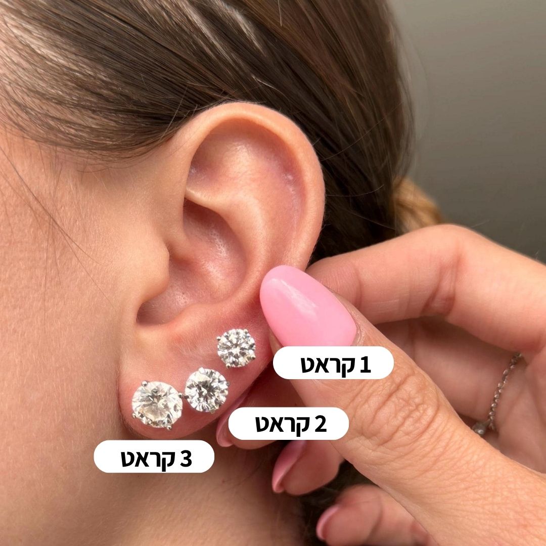 העגילים זמינים בגדלים שונים מ-1 קראט ועד 3 קראט לכל צד כך תבחרי את המראה המדויק שמתאים לך: קלאסי או נוצץ במיוחד.